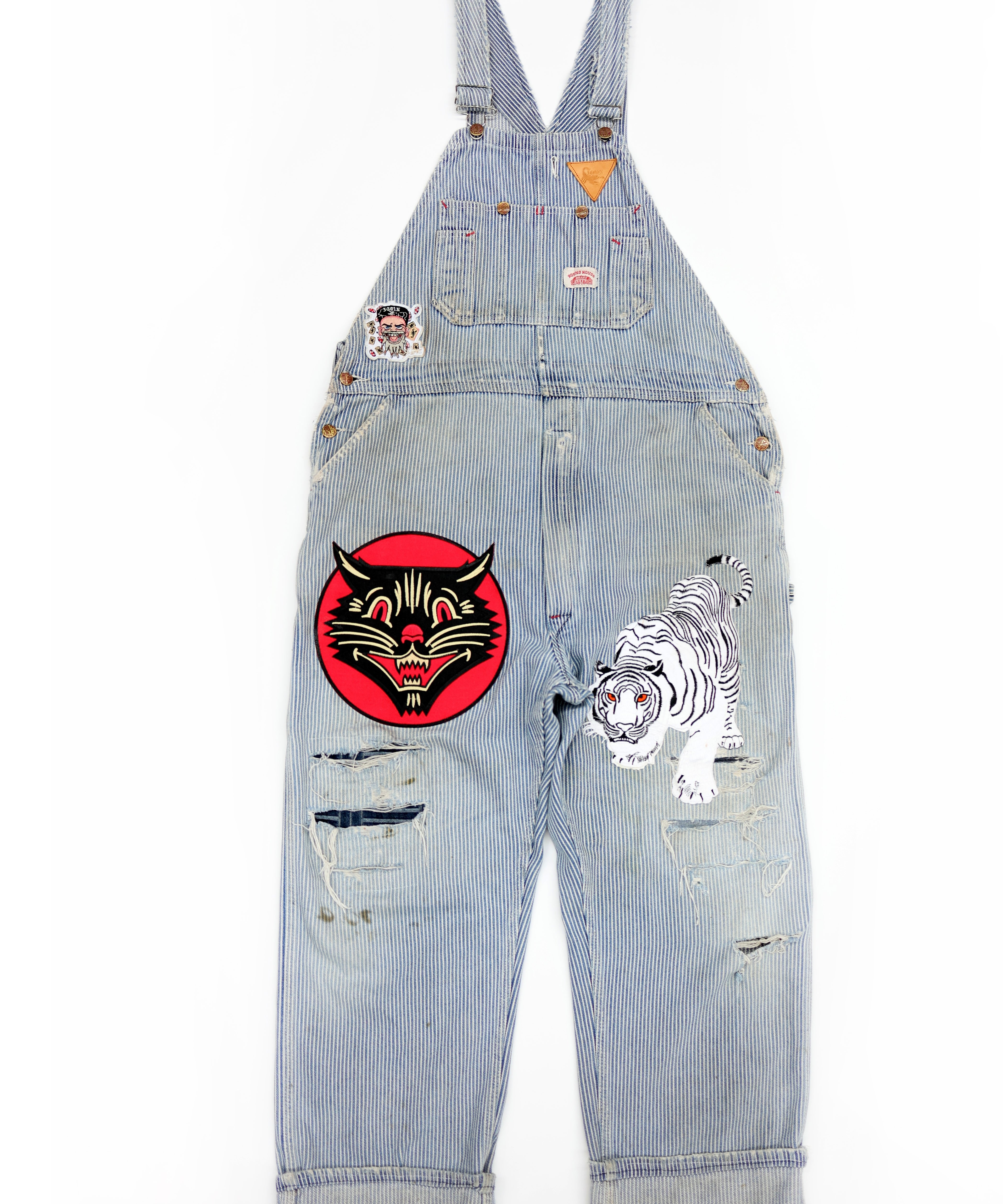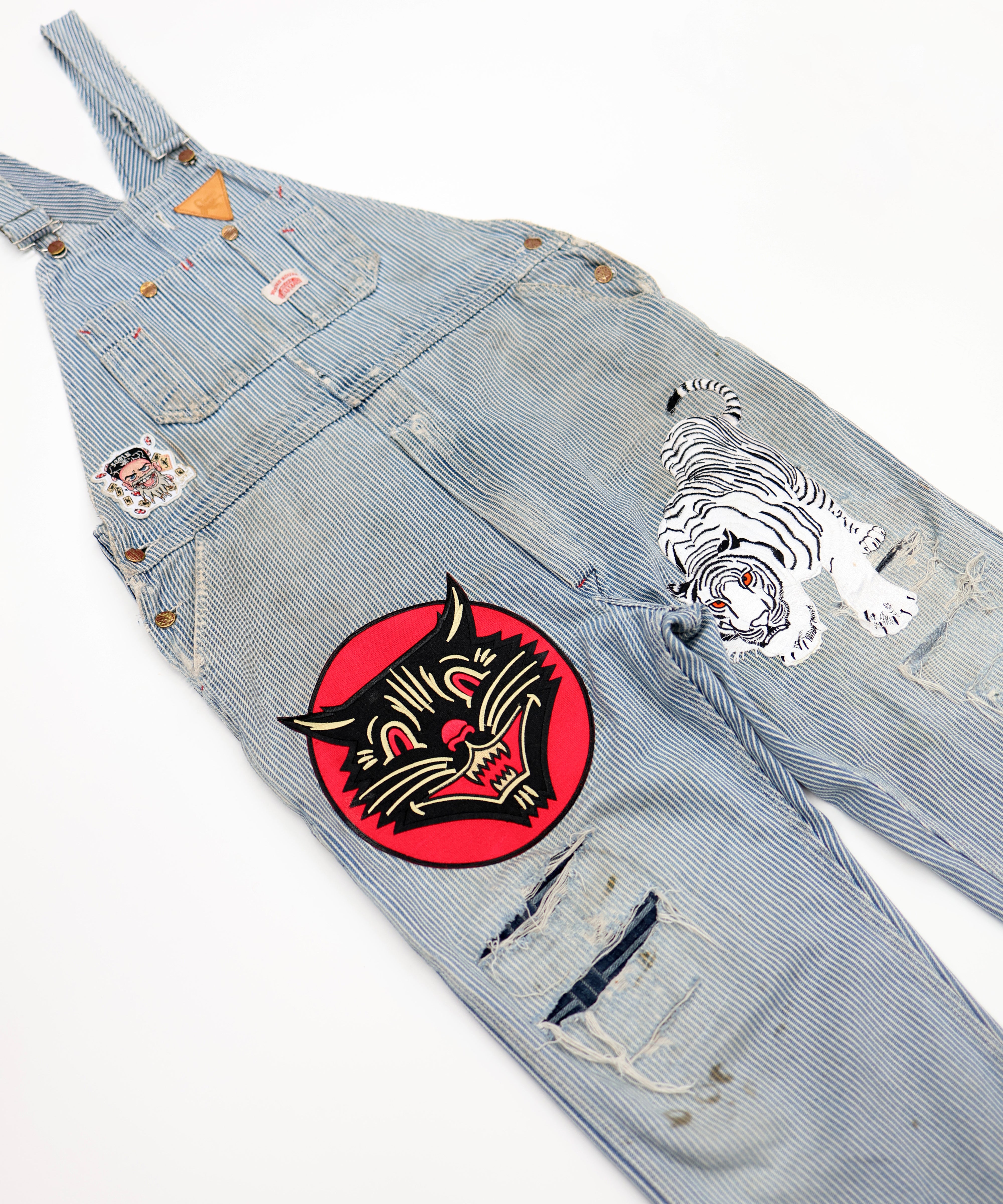 Patched Pinstriped Overalls